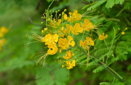 Caesalpinia pulcherrima , Barbados pride or Dwarf Poinciana or Peacock flower or FABACEAE or LEGUMINOSAE CAESALPINIOIDEAE or yellow flowers