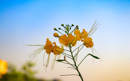 Vibrant Peacock Flowers Blooming Under a Bright Blue Sky