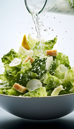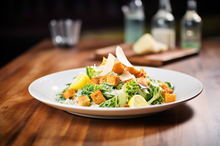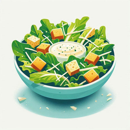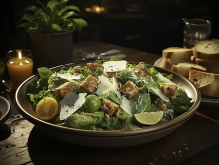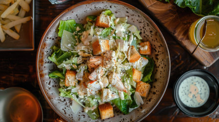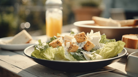 tasty chicken caesar salad with croutons, parmesan cheese and caesar dressing, created with generative ai