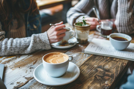 A group of friends enjoying coffee and conversation together in a cafe