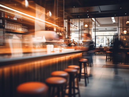 hipster loft modern bar cafe with people blurred motion, vibes and atmosphere