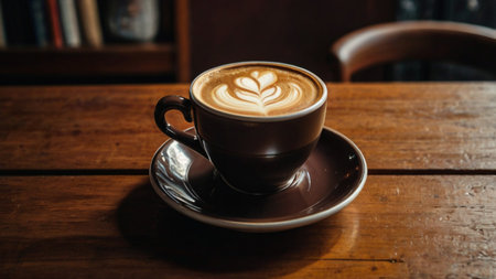 Exquisite Latte Art in a Stylish Cup on a Wooden Table