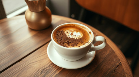 Artistic Cappuccino with Latte Art in Warm Tones in Cafe Ambiance