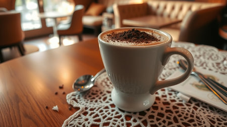 large cup of cocoa on a table in a cafe