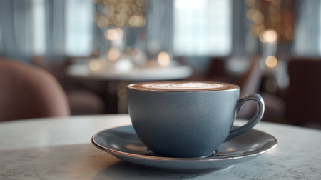 Elegant Coffee Cup with Foam on Saucer in Luxurious Setting