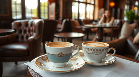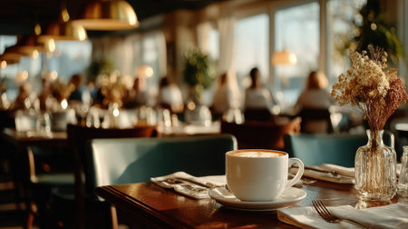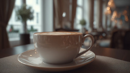 Cappuccino Delight: Warm Coffee Moment in a Cozy Cafe Setting