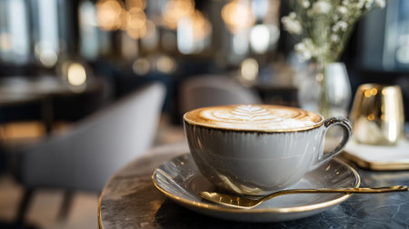 Exquisite Coffee Latte Art in a Modern Cafe Ambience