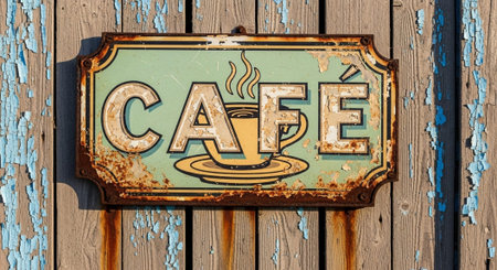 Wooden Retro Coffee Shop Sign, Selective Focus And Close Up