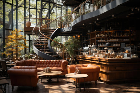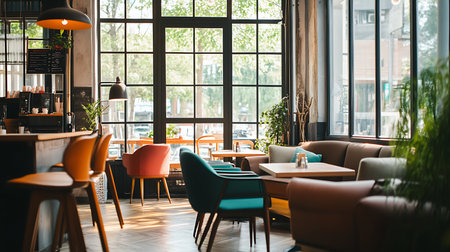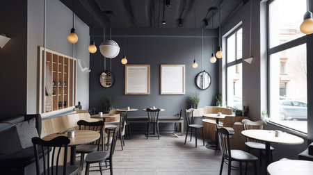 A Stylish and Trendy Cafe or Restaurant, with a Spacious and Comfortable Interior Design, Generative AI