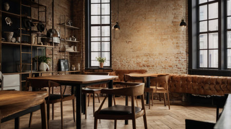 Empty Chairs and Tables in a Modern Industrial Cafe