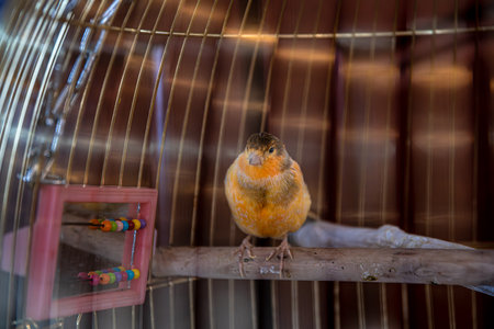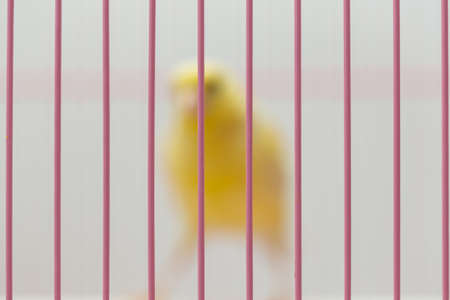 Bird in a cage. Vintage style. Selective focus. Toned.