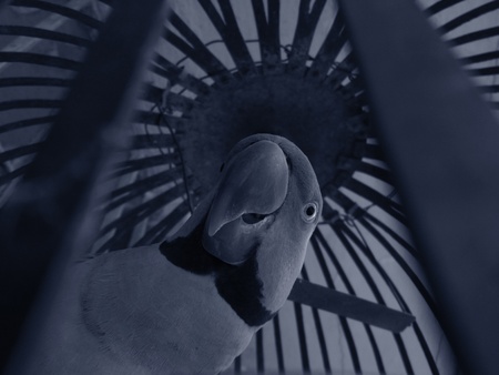 A PARROT IN CAPTIVITY SHOT WITH COOL EFFECT