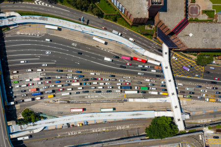 Hung Hom, Hong Kong 03 October 2020: Top view of Hong Kong traffic