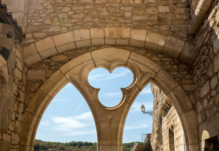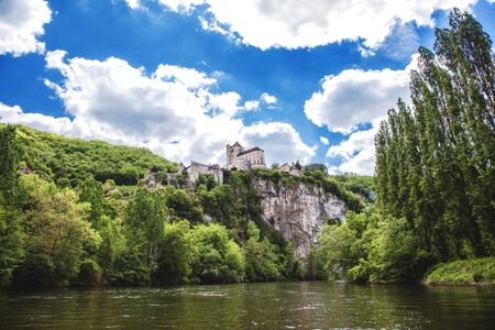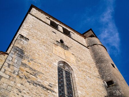 France, Lot, 2022, August 20 th, Saint-Cirq-Lapopie, labelled Les Plus Beaux Villages de France, 15th century fortified Roman church