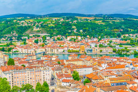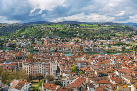 Landscape from Citadel in Besancon and River Doubs in Bourgogne