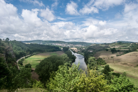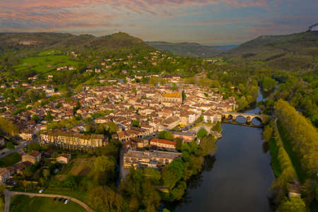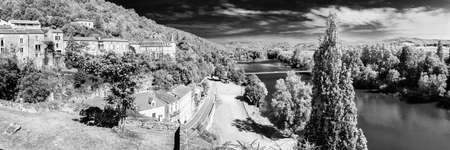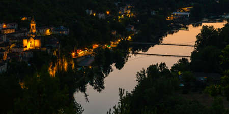 Sunset Landscape of River Aveyron and the surrounding gorges at ancient village of Saint Antonin Noble Val in France