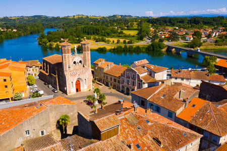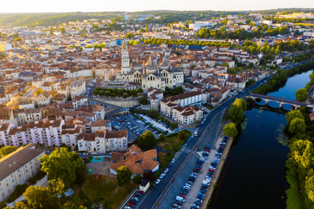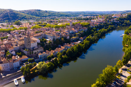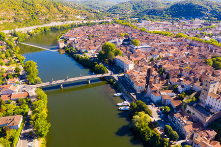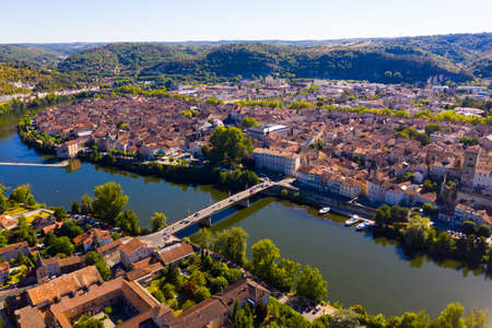 Aerial panorama of medieval houses in the old town of Cahors, France