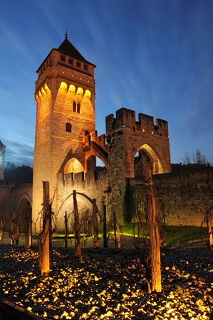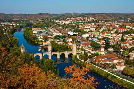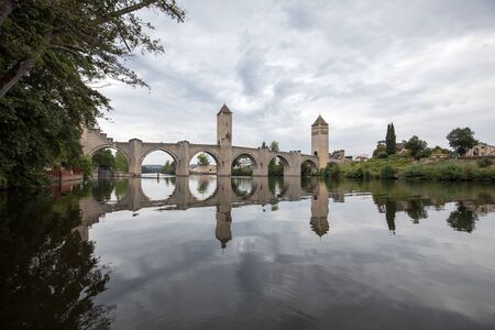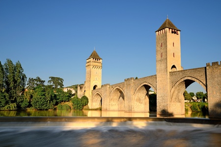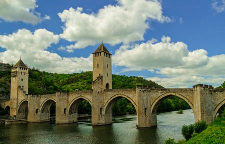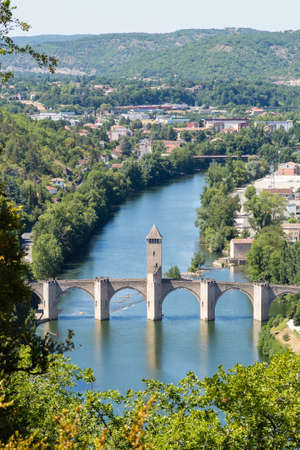 View at the Towers of Valentre bridge over Lot river in Cahors - France