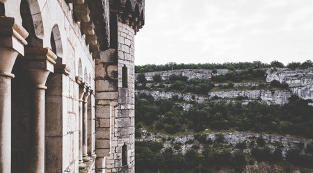 details of the wall and the stairs of one of the tower of the Pont Valentré, in Cahors, France