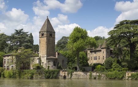 The green island Ile Barbe in the Saone, in the 9th arrondissement of Lyon.