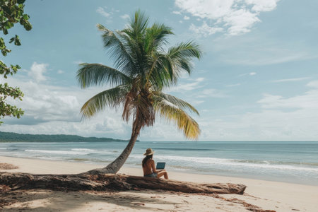 Tropical beach with blue sky and white clouds, perfect for summer vacation and travel. Generative AI