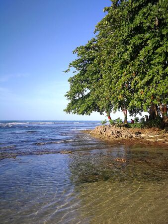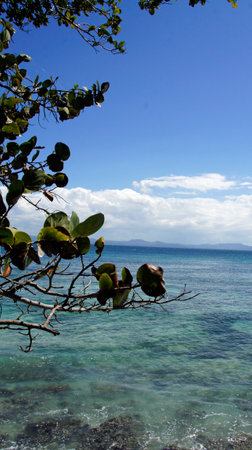 The blue sky over the sea captured from the coast in Punta Mona, Costa Rica, Central America