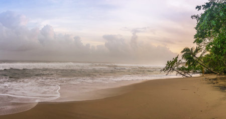 Sunrise at Playa Cocles, beautiful tropical Caribbean beach, Puerto Viejo, Costa Rica east coast