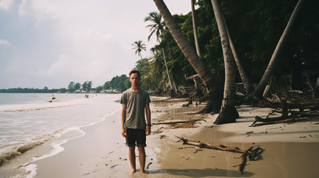 the serene glen in thailand, surrounded by lush greenery, is beautifully captured on analog film, showcasing the warm tones and textures of the natural scenery, with the pristine white sand beach stretching towards the horizon, evoking a sense of tranquility and tropical paradise. ai generated