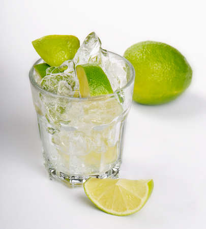 Caipiroska coktail with lime isolated on white background