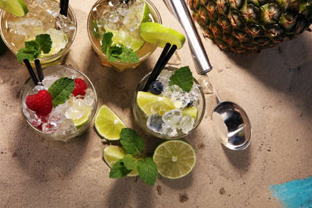 Classic and blackberry mojito, margarita cocktail with lime.