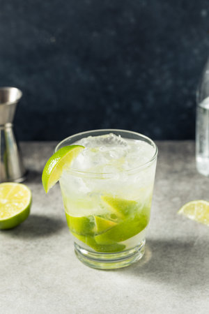 Lemon Fruit Lime Caipirinha of Brazil. Cocktail caipi