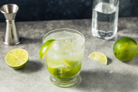 Lemon Fruit Lime Caipirinha of Brazil on stone rustic background