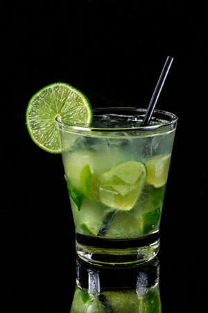 lemon caipirinha on black background. Brazilian drink.