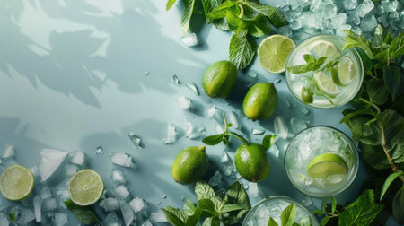 A refreshing glass of mojito with fresh limes and mint leaves