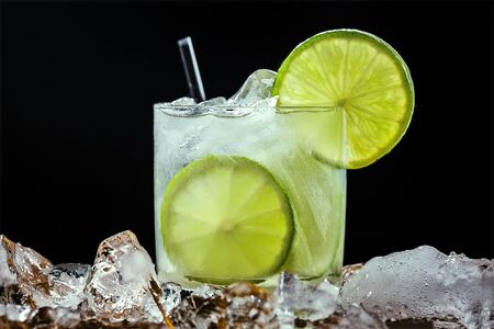 Brazilian caipirinha glass with icicle on black background