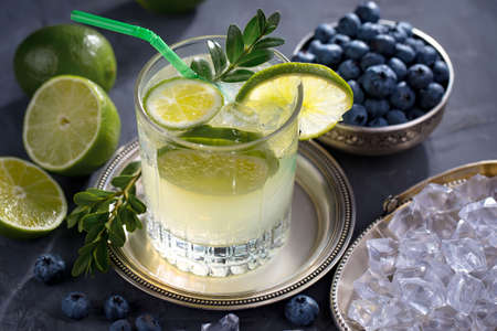 Lemon Fruit Lime Caipirinha of Brazil. cold alcohol cocktail.