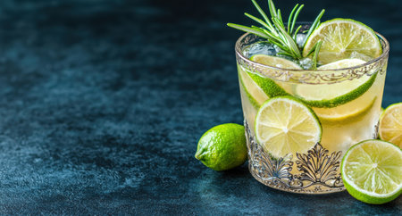 refreshing summer cocktail with lime and rosemary