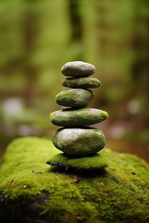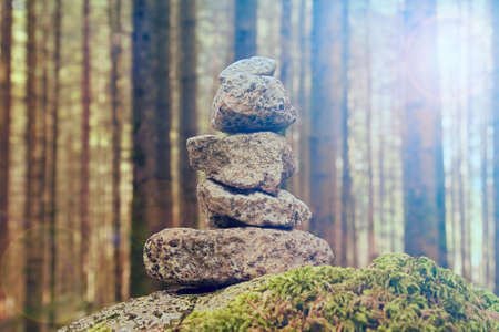 stability of stones in the forest, Stack of rocks (zen meditation and concentration in the nature concept)