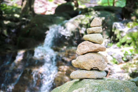 Stone tower rocks are arranged at waterfall, Zen balance concept.