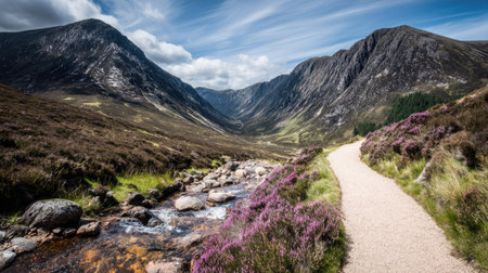 Beautiful panoramic view of a footpath in the Scottish Highlands