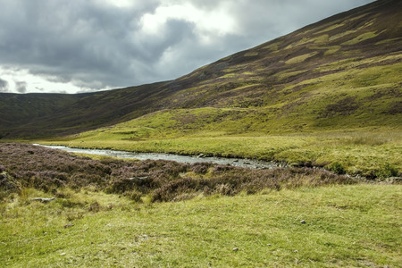 View of a river in the Highlands of Scotland in United Kingdom in an overcast day; Concept for travel in Scotland