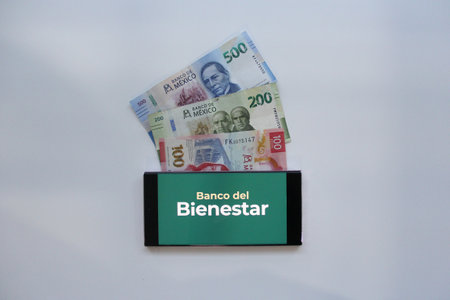 Mexico City, Mexico - Feb 22 2025: Banco del Bienestar is a Mexican development banking institution dependent on the Government of Mexico, which distributes resources