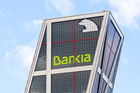 Madrid / Spain; 10/16/2018. Bankia tower, the main headquarters of the entity in the Paseo de la Castellana street in Madrid. It is one of the two symmetrical skyscrapers that make up Puerta de Europa.
