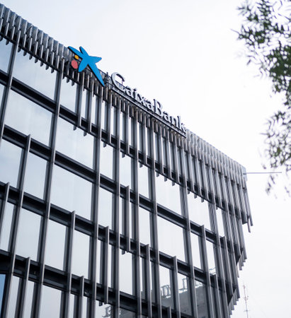Barcelona, Spain - October 7, 2023: CaixaBank, with administration in Barcelona and legal headquarters in Valencia, is leading spanish retail bank