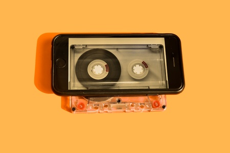 ODESSA, UKRAINE - APRIL 1, 2020: Retro 80s media and accessories. Retro wave