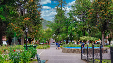 san martin de los andes, neuquen, argentina 09-01-2021: Sarmiento small colorful park located in San Martin de los Andes, Neuquen, Argentina