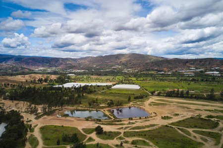 Colombian countryside landscape with farms seen from the air. Colombia
