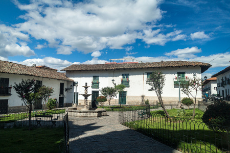 Beautiful streets and houses around Bolivar Square in Tunja city