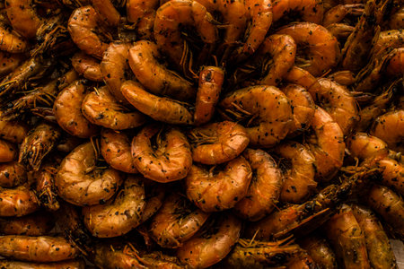 Shrimps And Crayfish on the Asian Night Market Closeup