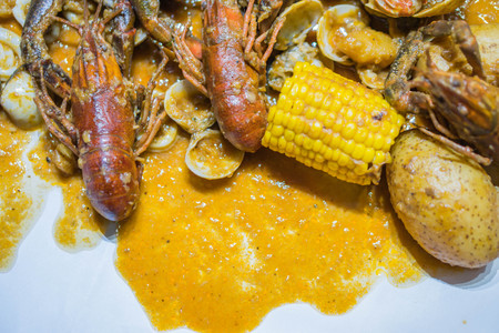 Homemade Southern Crawfish Boil with Potatoes Sausage and Corn